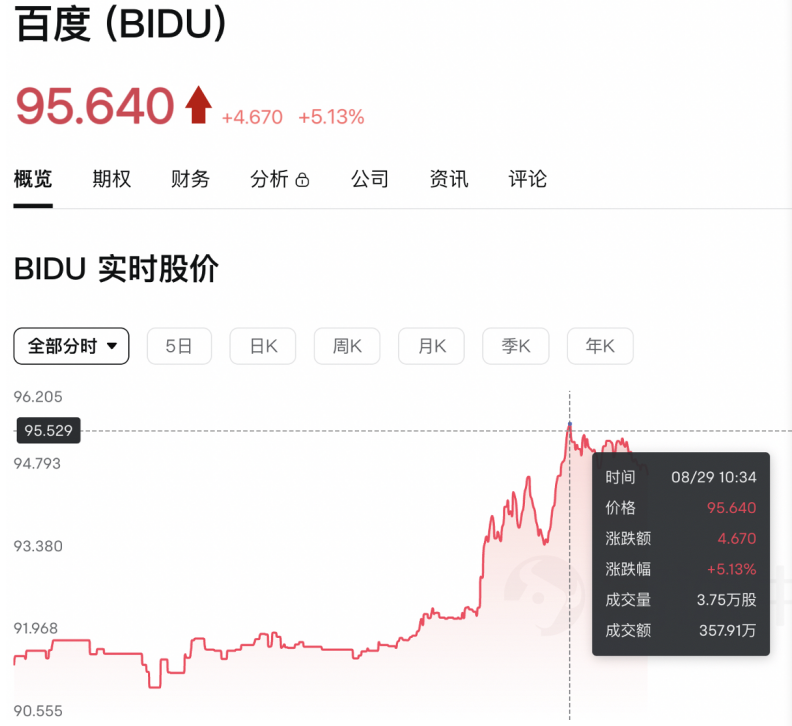 - 编辑:皇冠APP官方下载 -Baidu的美国股市增长了5%以上,全股AI云战略获得