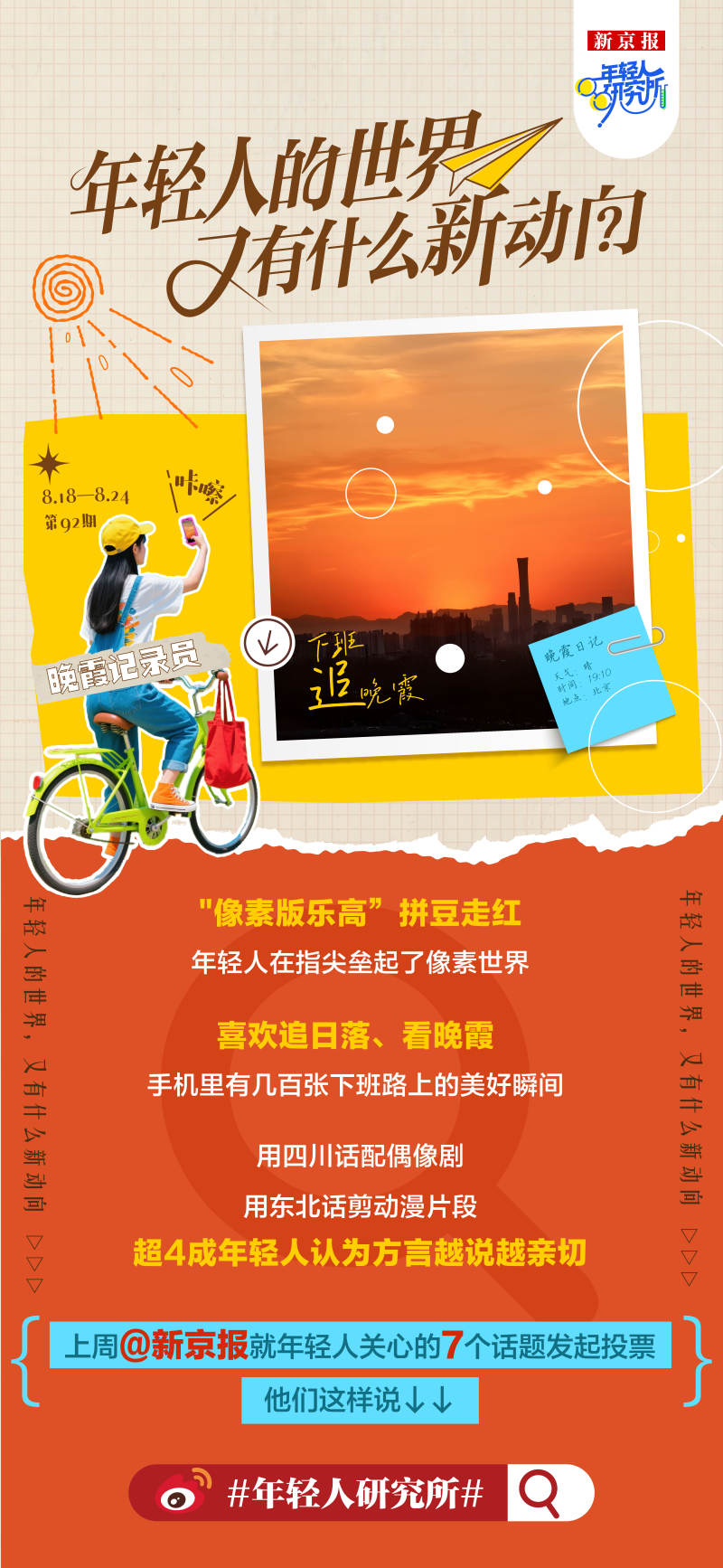 “ Lego的Pixel版本” PIN DOU已流行。年轻人建立了手指。像素世界想追逐日落并观看日落。有多种方式 - 手机上有美好的时刻。他们下班了。在四川方言的偶像戏剧中,他们使用东北方言来治愈动漫片段。超过40%的年轻人认为他们在方言上的讲话越多,他们就越友好。上周 @沪新官网站。他开始对年轻人关心的7个主题进行投票。他们说了这个计划。赵的编辑想要。 Zhang Yuhe。粉丝yijing。 Ai Zheng。赵喜欢它。由张Yao设计。校对。 Li Lijun。